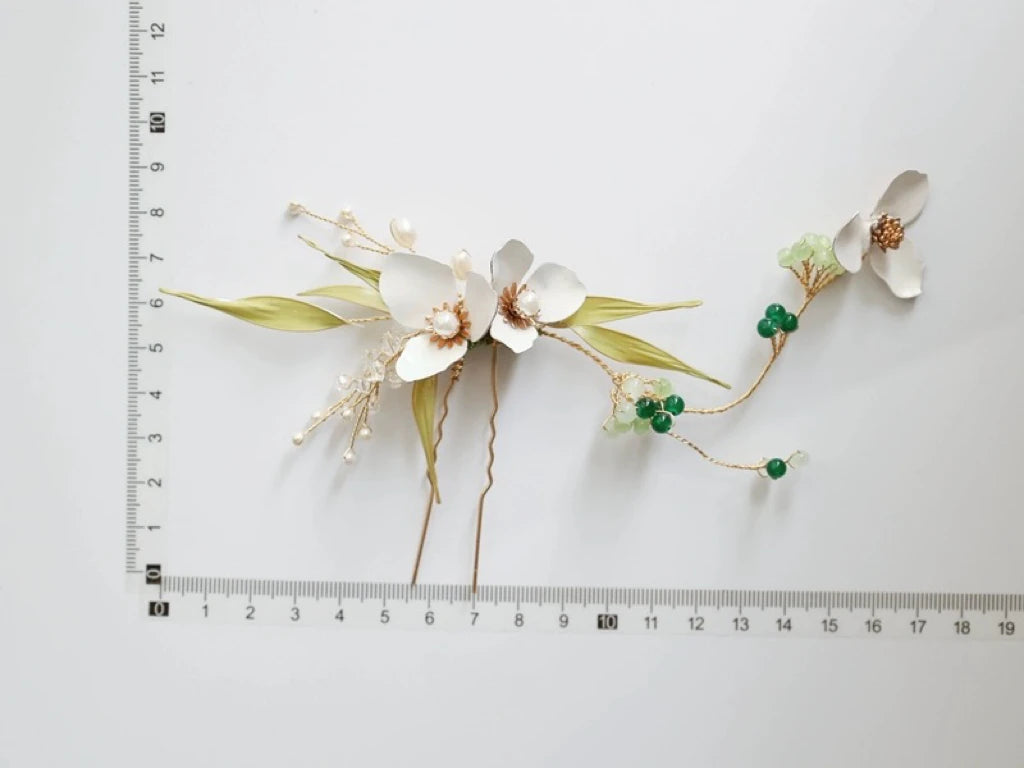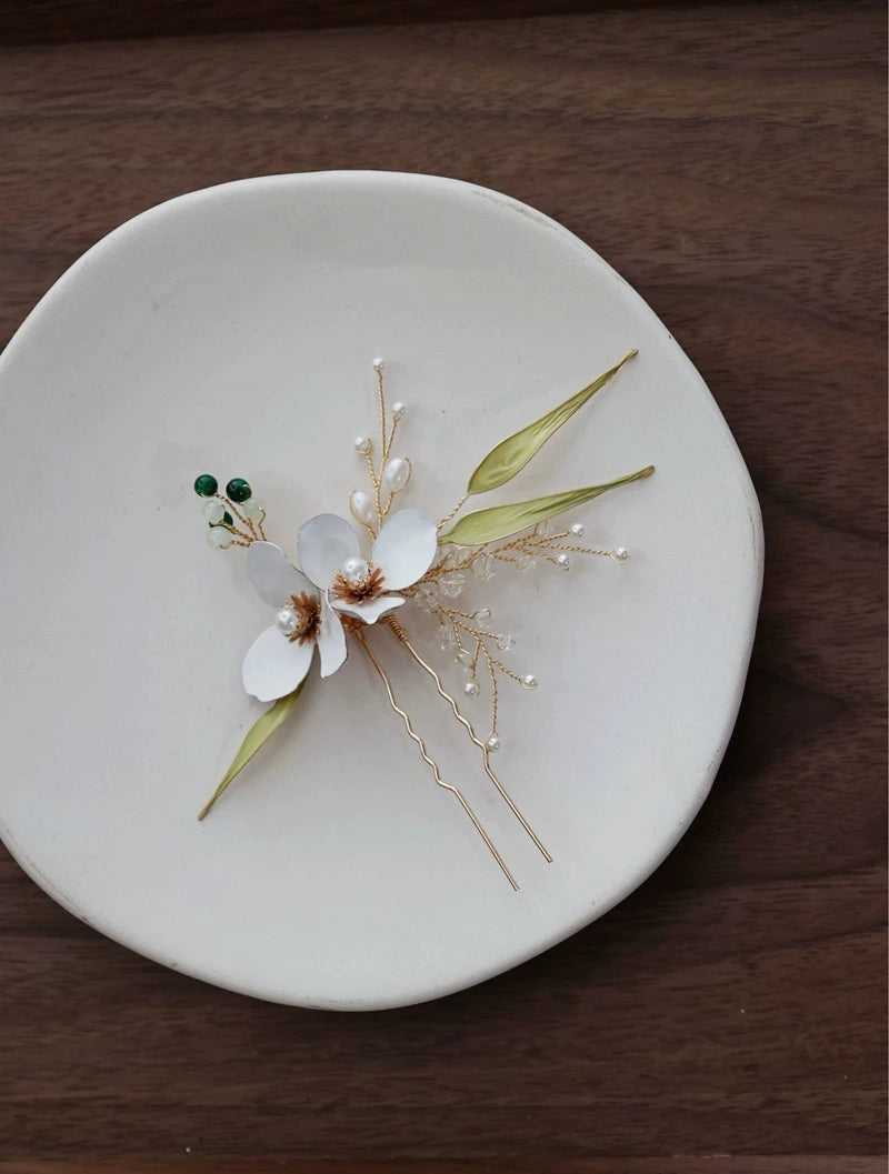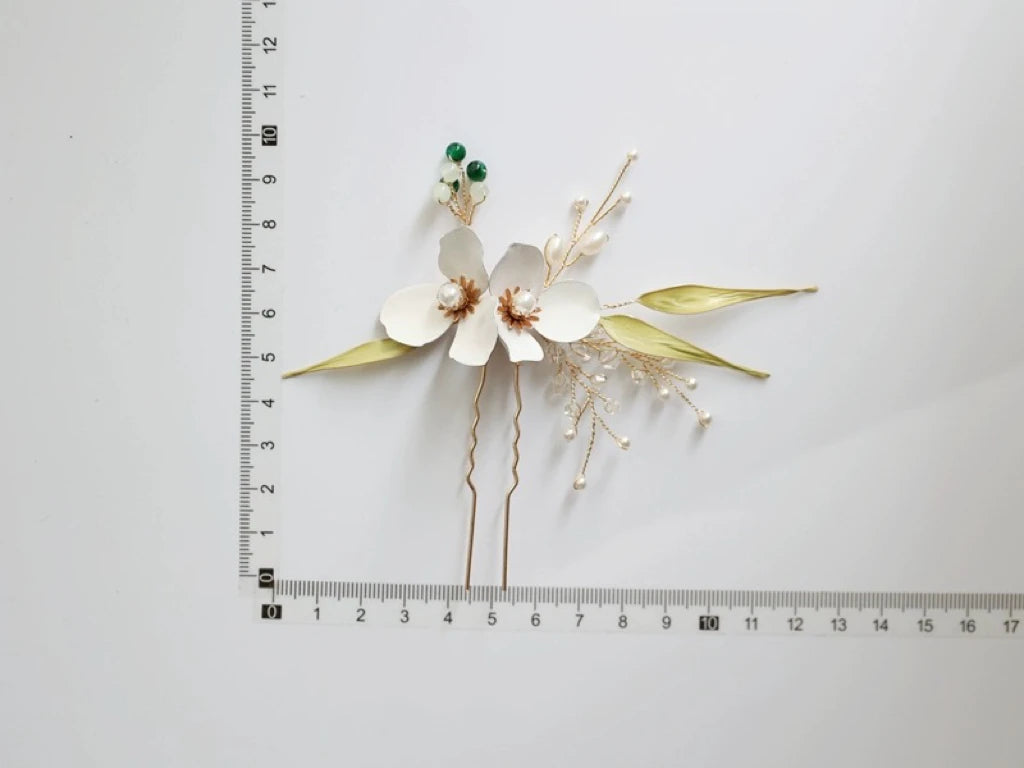 Bridal Jewelry Imitation Pearl Hairpin Gold Color Head Piece For Brides Women Flower Leaf Hair Comb Pin Clip Wedding Accessories