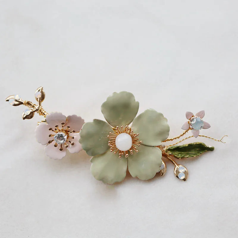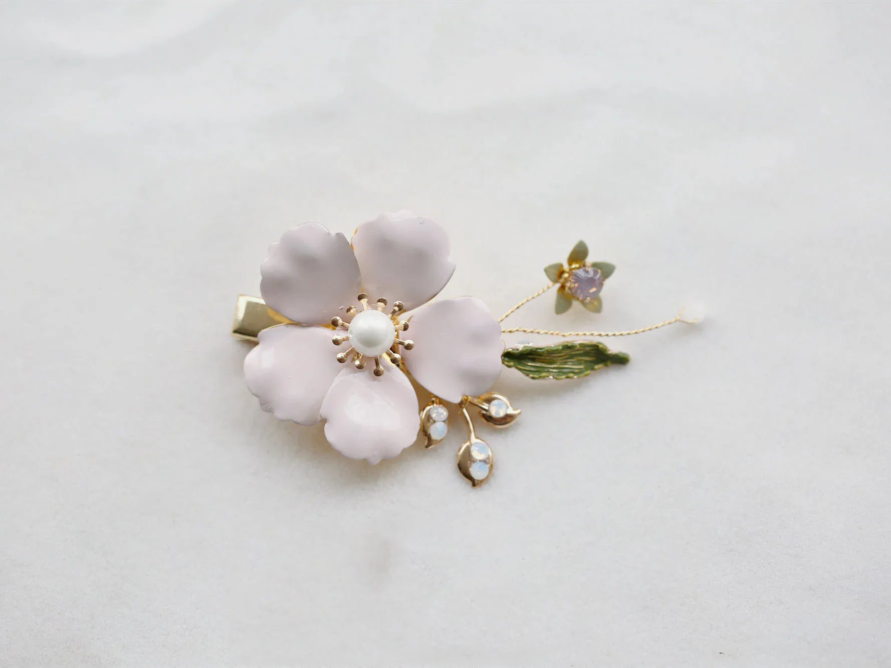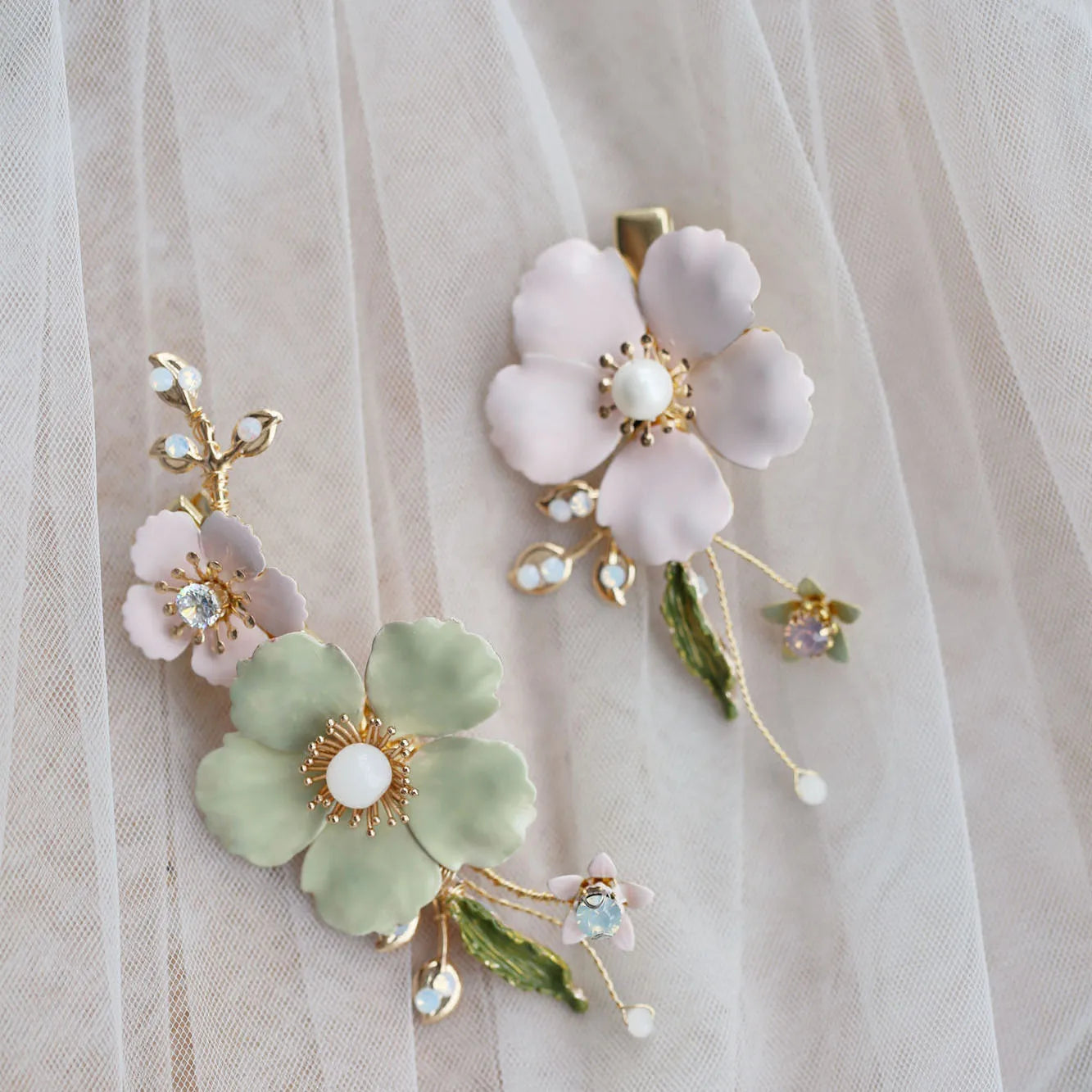 Bridal Jewelry Pink Flower Hairpins Crystal Hair Clips Pins Headpieces For Brides Women Girl Headdress Wedding Accessories