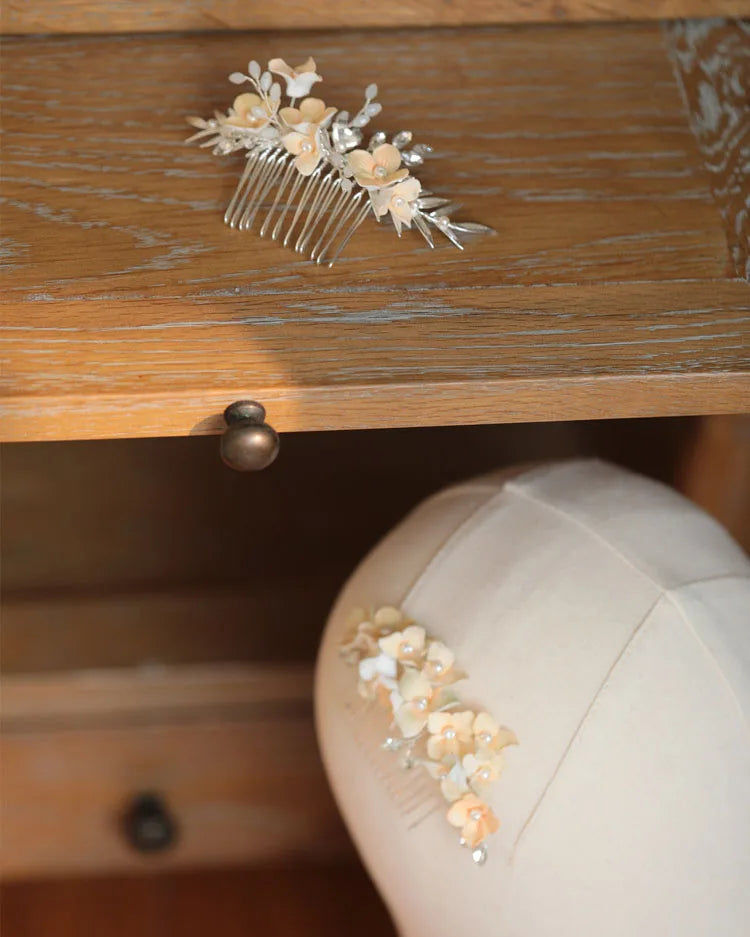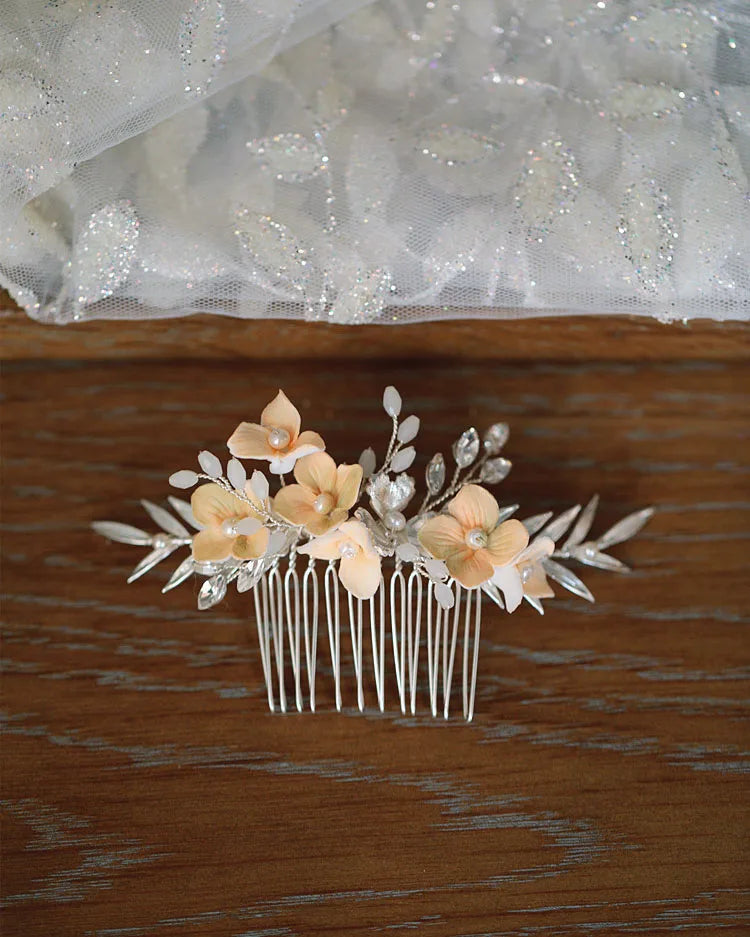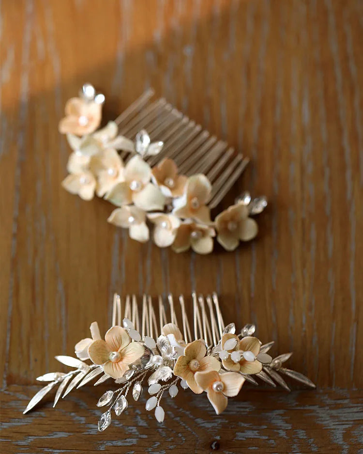 Bridal Jewelry Porcelain Flower Hair Comb Pin Clip For Brides Bridesmaids Hairpins Floral Leaf Head Piece Wedding Accessories