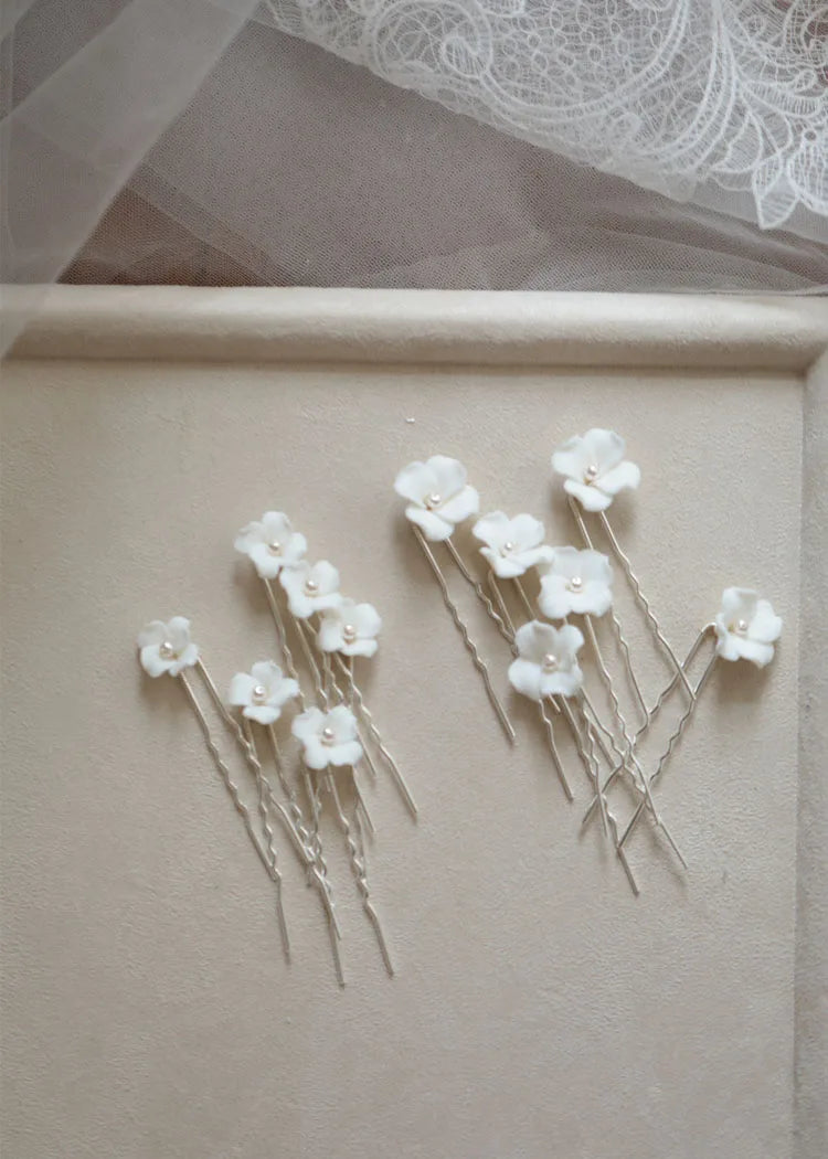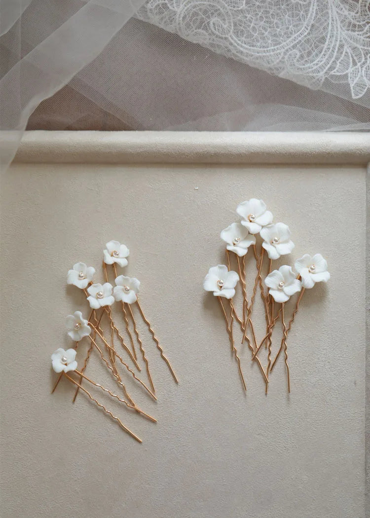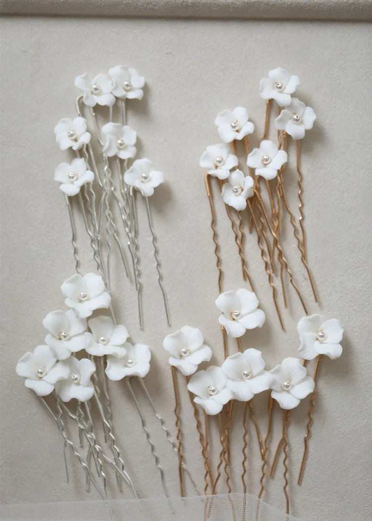 Bridal Jewelry Porcelain Flower Hair Pin Clip Pearl Head Piece For Brides Bridesmaids Hairpins Women Wedding Accessories