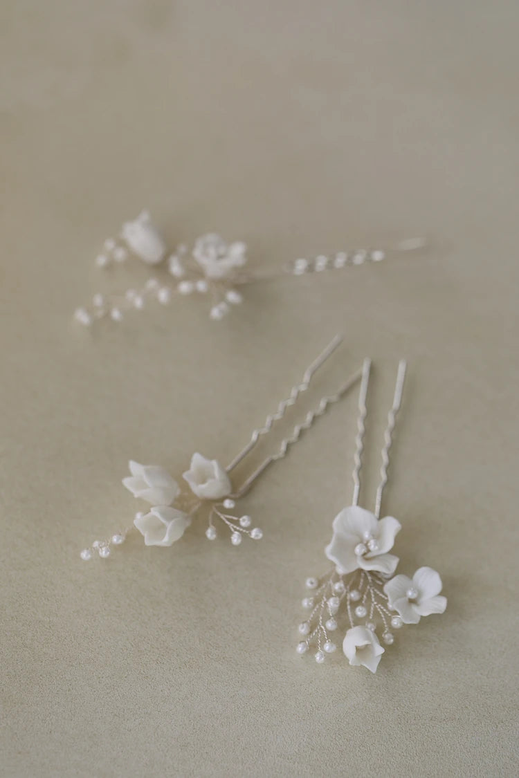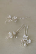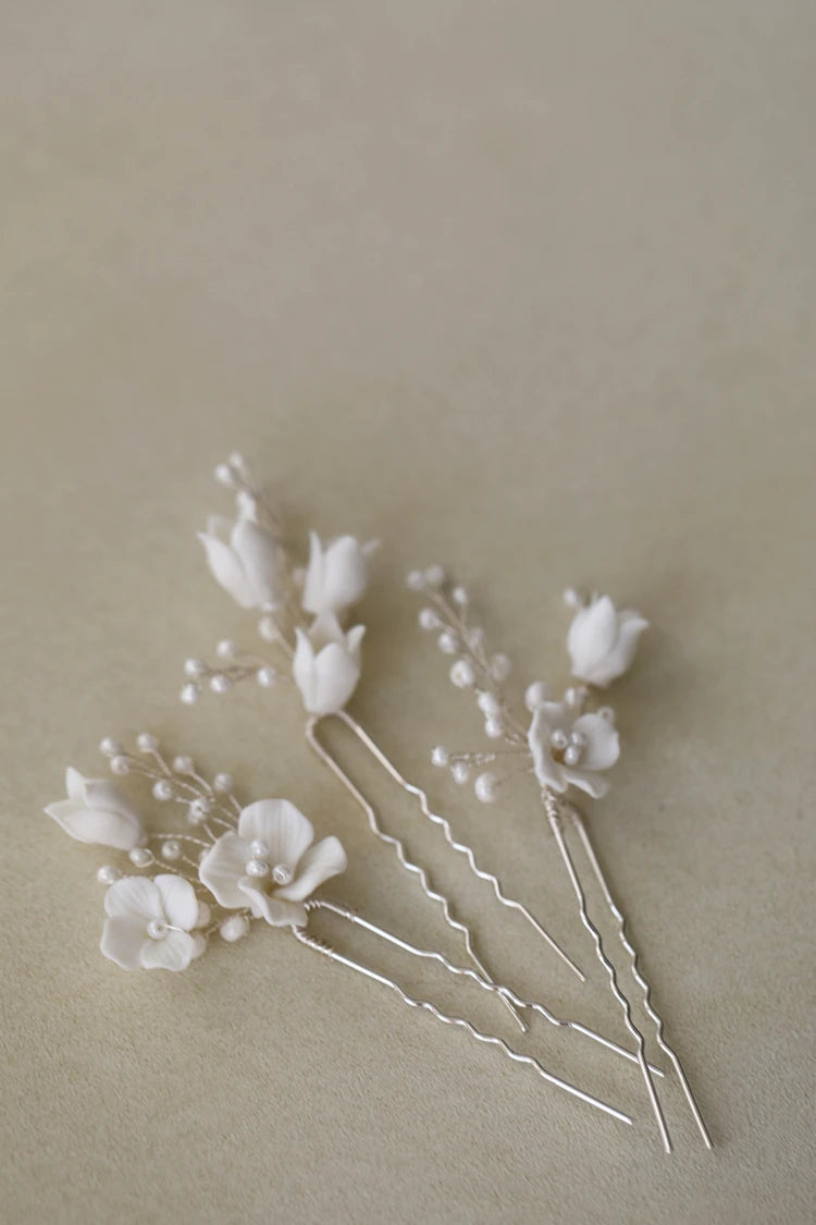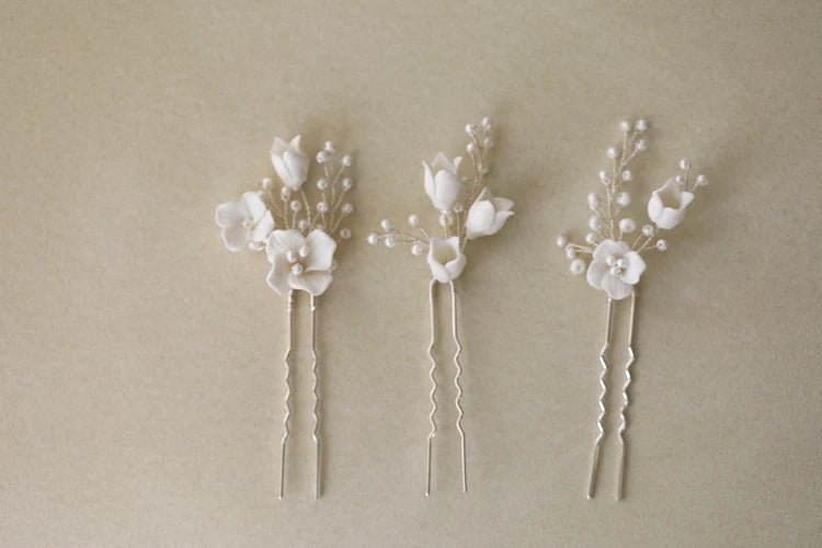 Bridal Jewelry Porcelain Flower Hairpins Silver Color Hair Pin Clip For Brides Bridesmaids Women Head Pieces Wedding Accessories