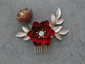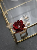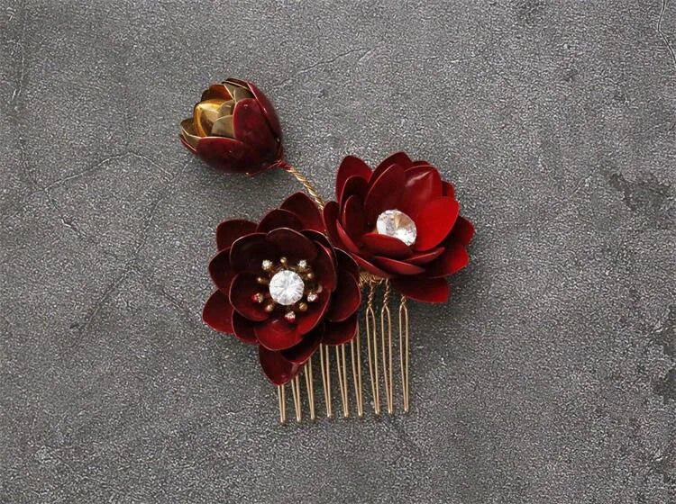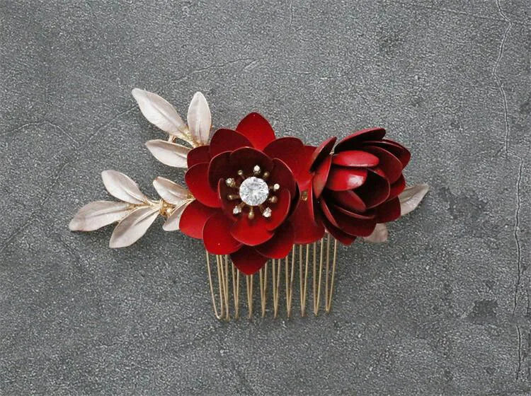 Bridal Jewelry Red Flower Hair Combs Pins Clips Crystal Rhinestones Hairpins Head pieces Brides Headdress Wedding Accessories