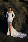 Civil 2025 Crepe Mermaid Wedding Dresses High Slit Formal Wedding Party Dress Long Sleeves Mermaid Bridal Gowns Customized