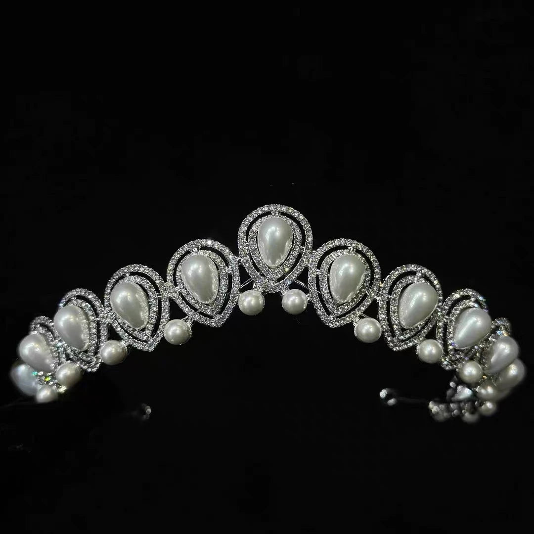 Crystal Pearl Tiaras and Crowns Rhinestones Diadem Bride Women Princess Queen Headband Bridal Hair Jewelry Wedding Accessories