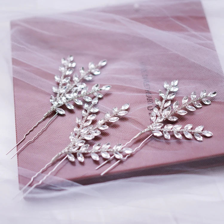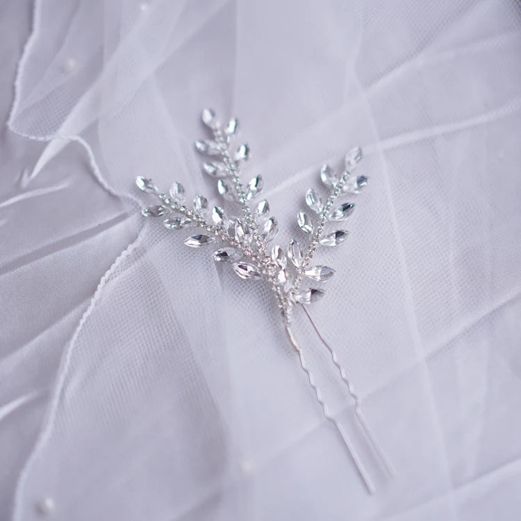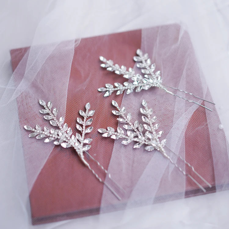 Crystal Rhinestones Hair Pin Clip Leaf Hairpin For Brides Bridesmaids Silver Color Head Piece Wedding Accessories Bridal Jewelry