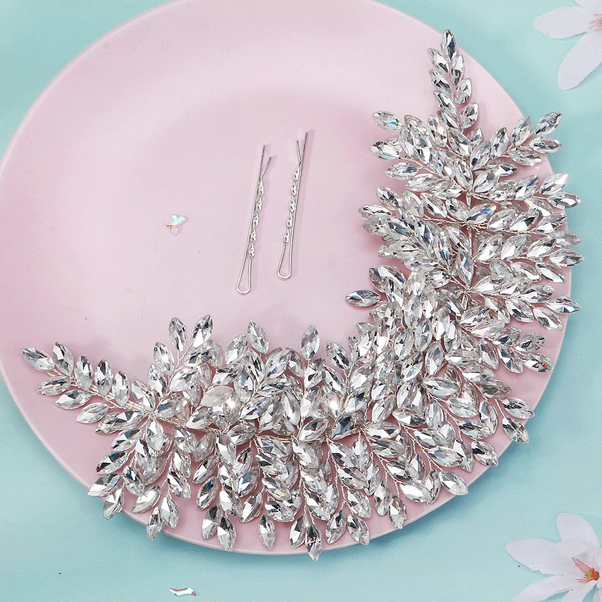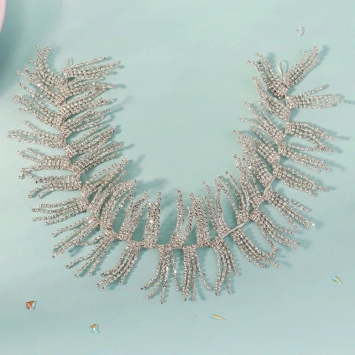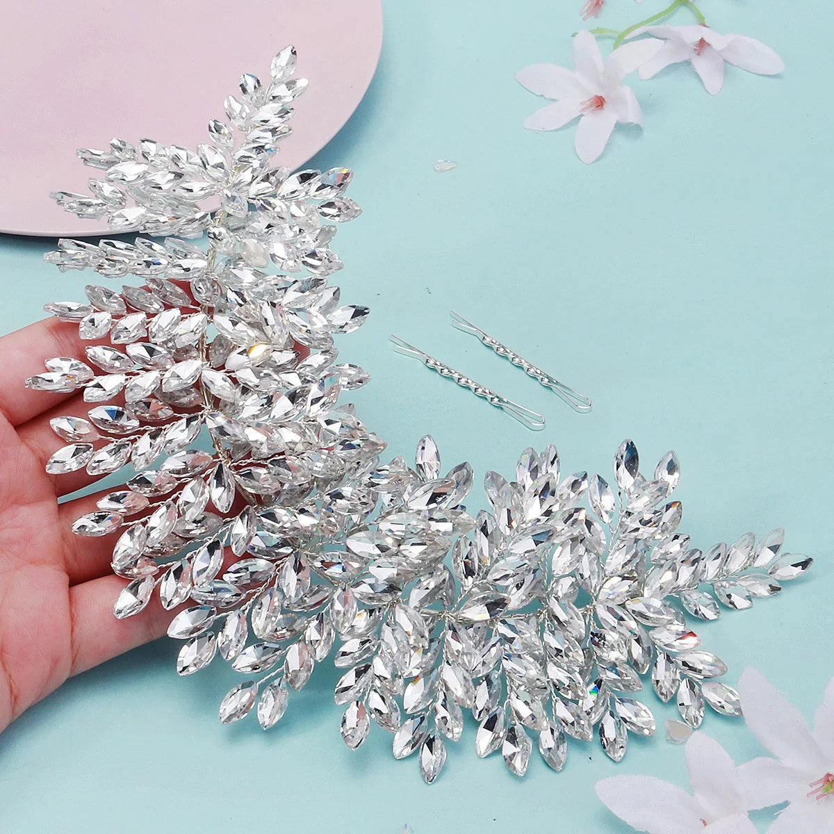 Crystal Rhinestones Headband Hairband Silver Color Headpiece For Brides Women Headdress Wedding Accessories Bridal Jewelry