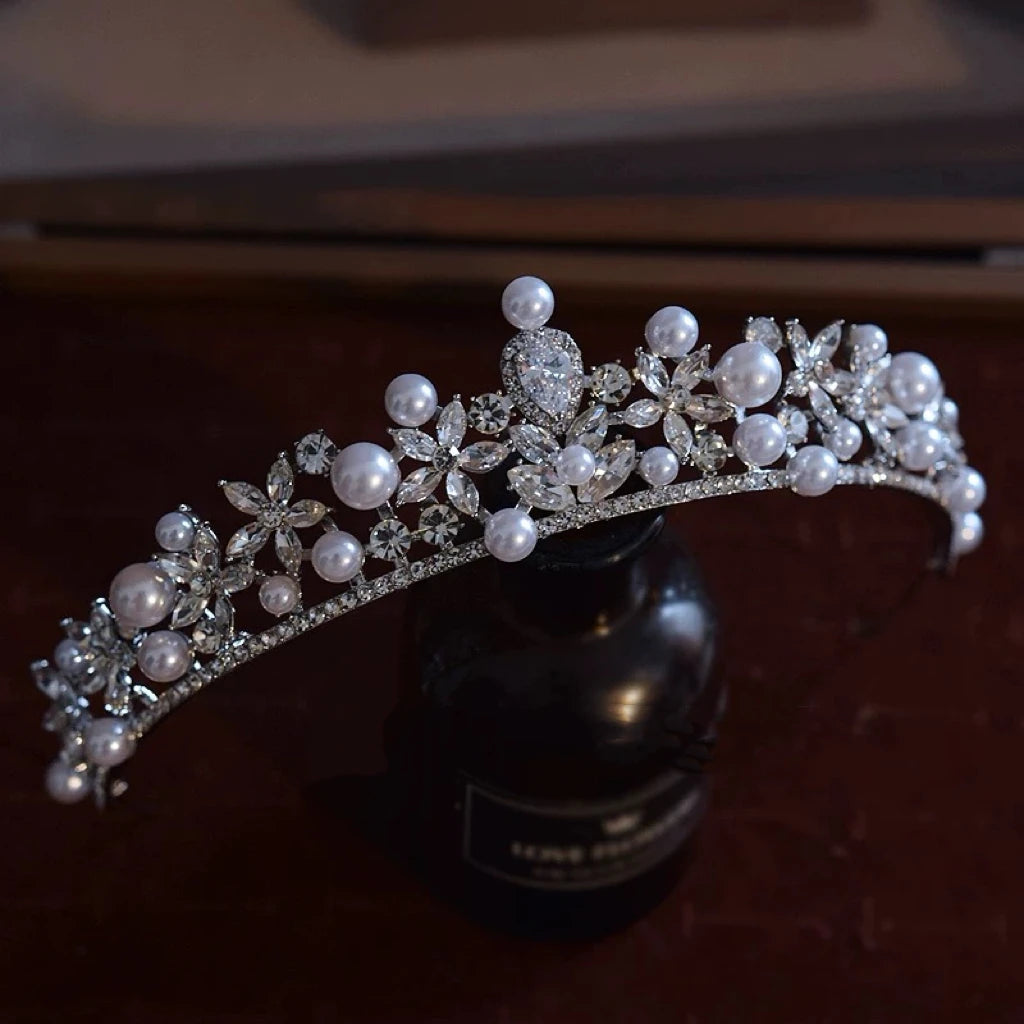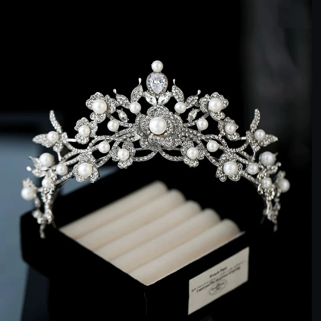 Crystal Rhinestones Tiaras and Crowns Pearl Diadem Women Bride Prom Pageant Headband Bridal Hair Jewelry Wedding Accessories