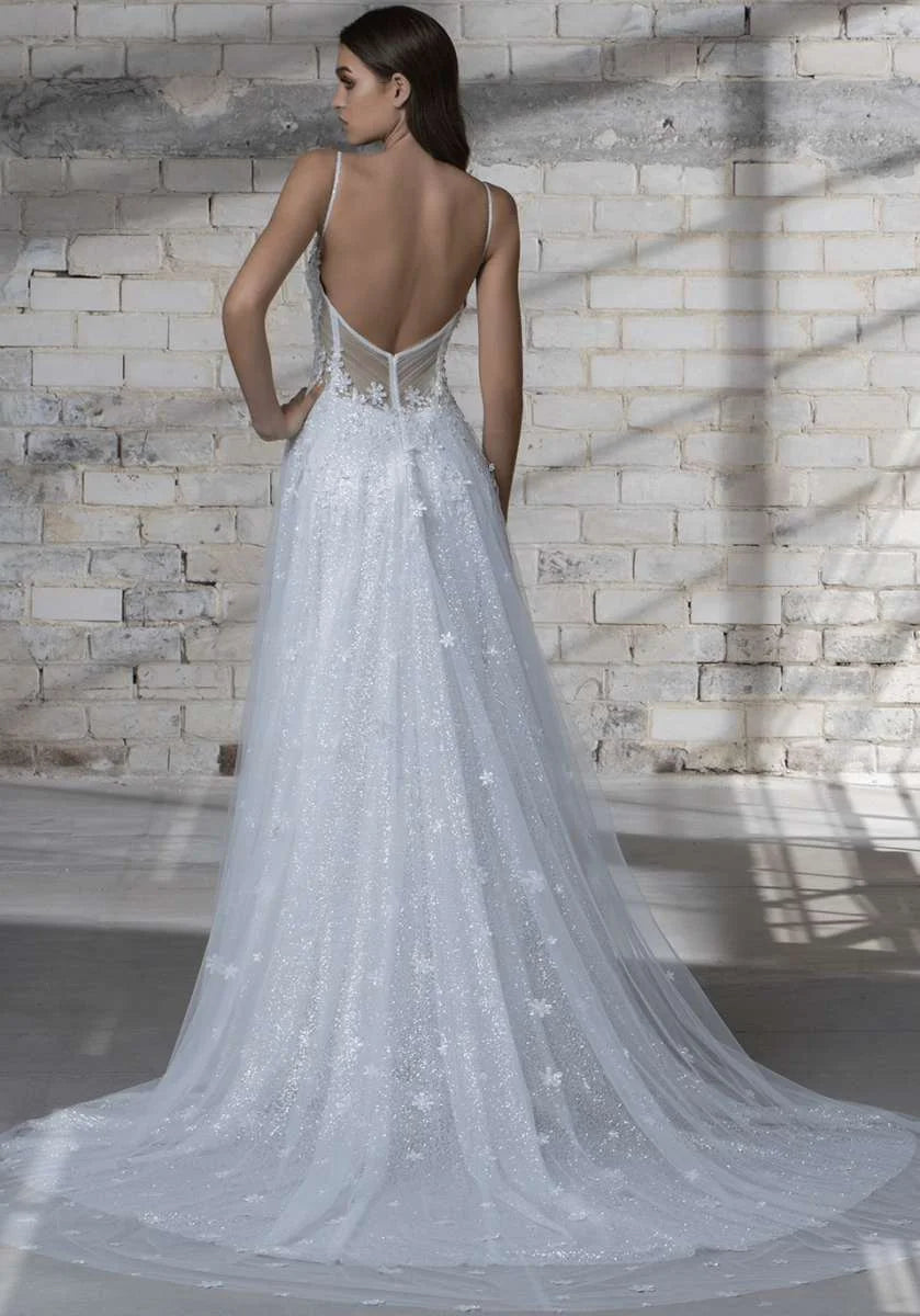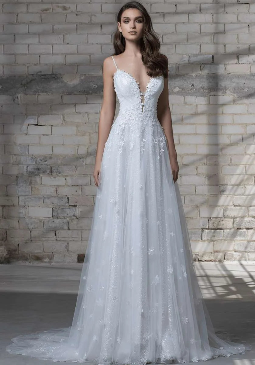 Custom 2025 Women's Sexy Elegant Deep V-Neck Embroidered Tulle Lace Patchwork Backless A-Line Princess Wedding Dress