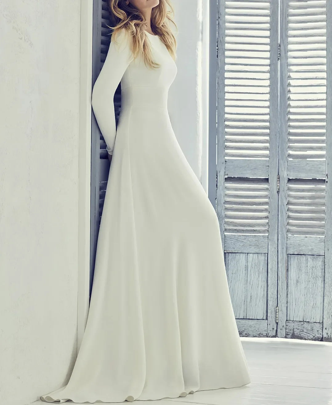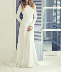 Custom New Stretch Crepe A-line Long Modest Wedding Dress Long Sleeves Coverd Back Women Informal Modest Bridal Gown 2025
