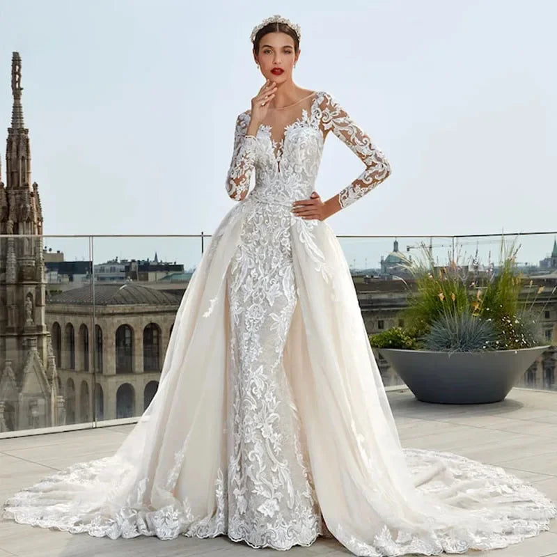 Customised Luxurious Mermaid Lace Appliques Wedding Dresses for Women Detachable Train Robe De Mariee for Brides