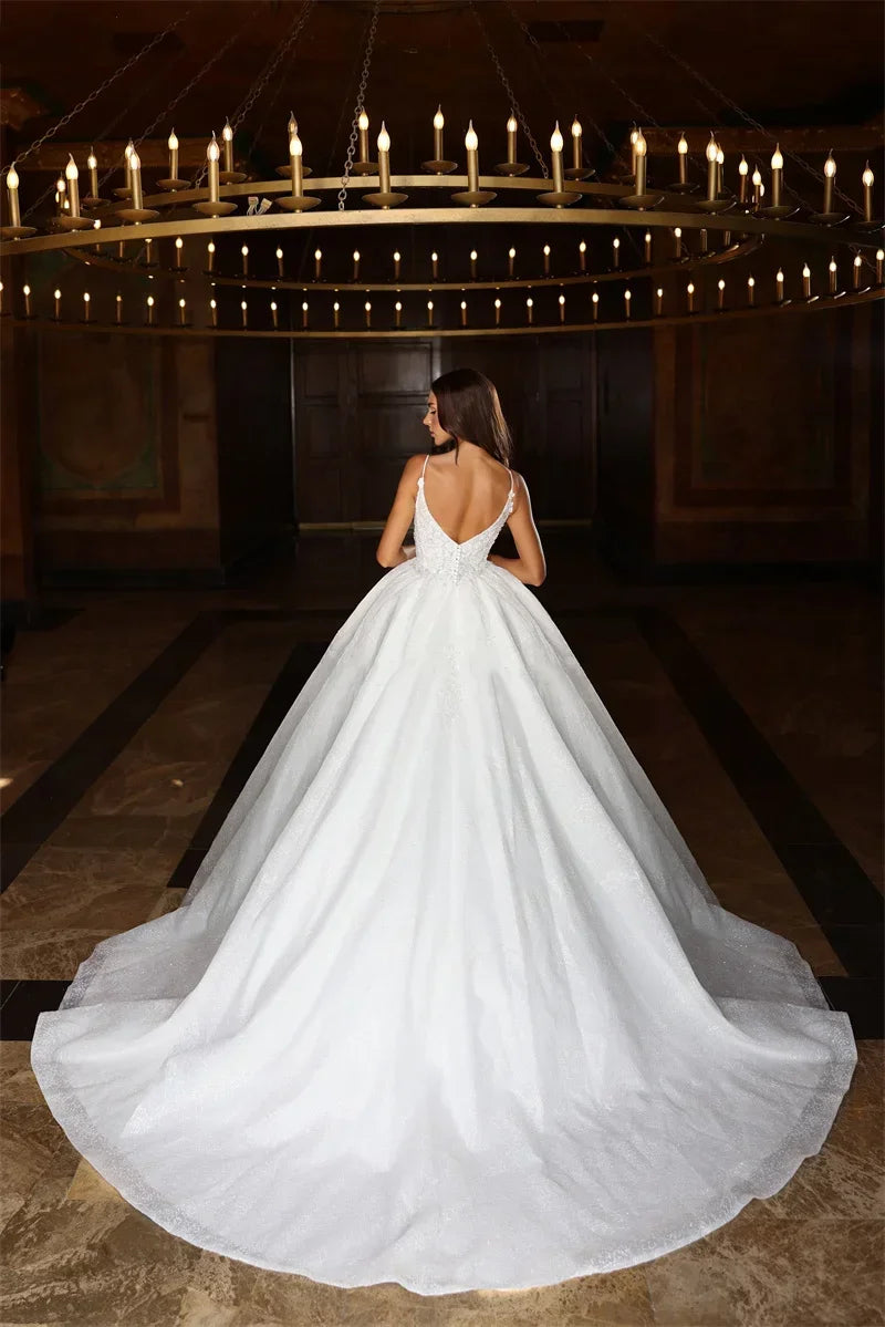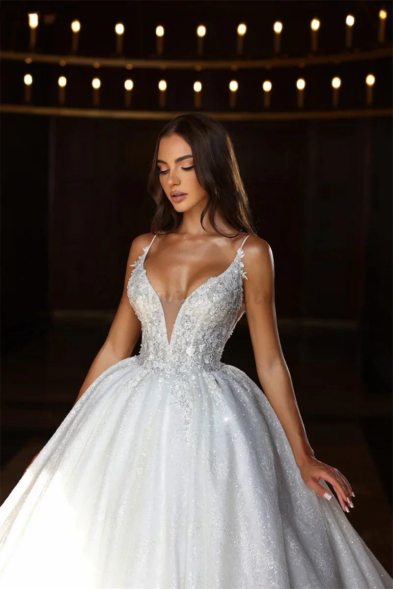 Customization Luxurious Spaghetti Strap Shiny Women's Wedding Dresses Appliques Bride Gowns A Line Princess Vestidos De Novia