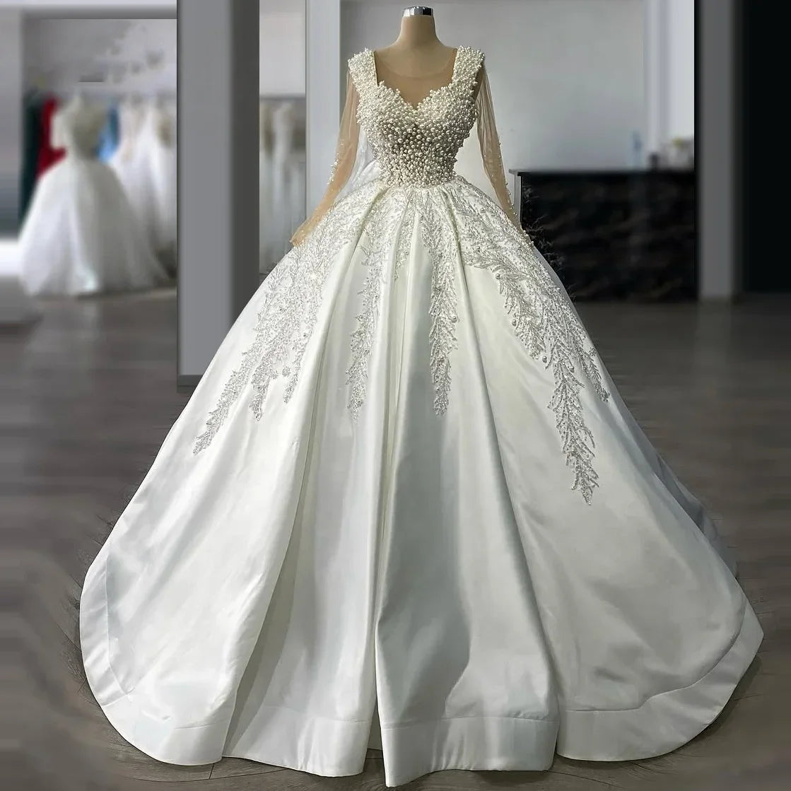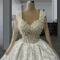 Customize Princess Wedding Dresses Illusion Full Sleeve Ball Gown Pearls Beaded Applique Vestidos de novia amanda novias officia