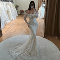 Customize Sexy Mermaid Wedding Dresses 2026 Off ShoulderLace Long sleeves Ball Gown Boatneck Boat Neck Vestido De Novia