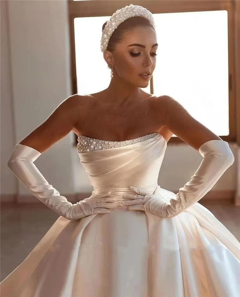 Customized 2025Gorgeous Wedding Dresses Modern Elegant Pearls Princess Bridal Gowns With Bow Satin Plus Size Vestidos De Novia