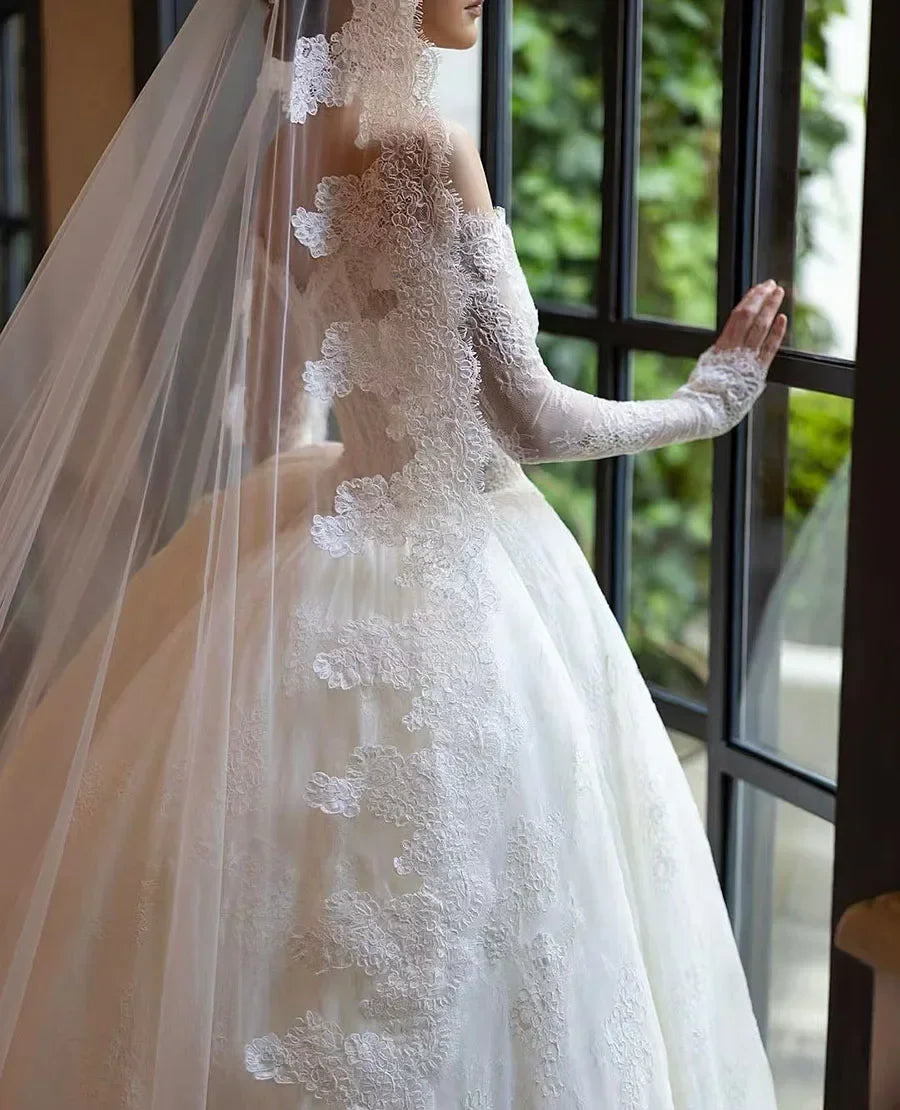 Customized Ball Gown Lace Wedding Dress Off the Shoulder with Long Sleeves Ball Gown Bridal Gowns Vestidos De Noiva