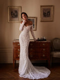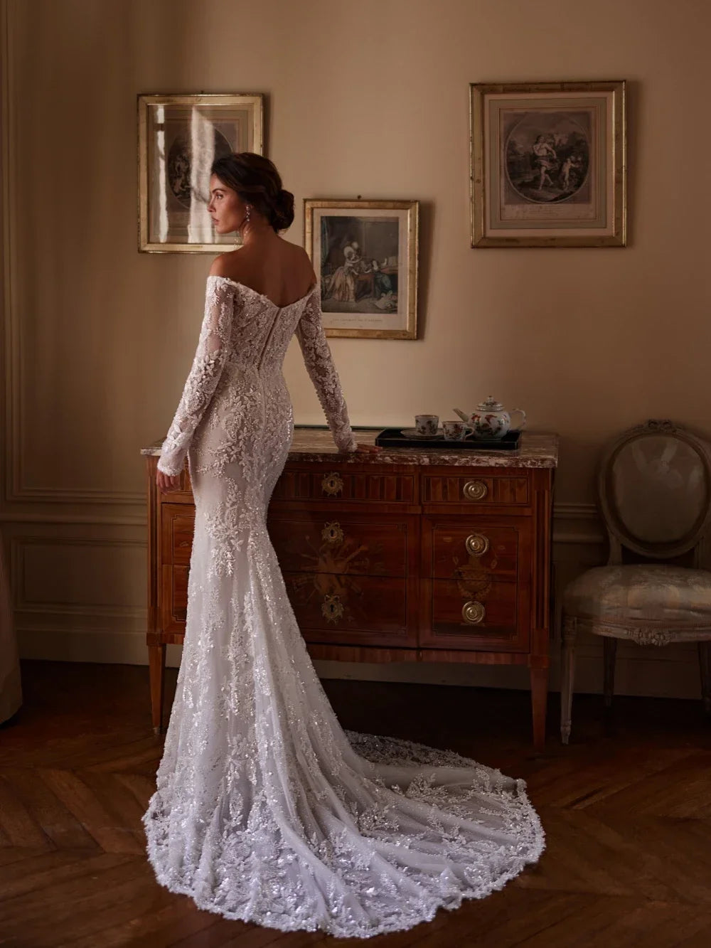 Customized Beaded Lace Mermaid Wedding Dress Long Graceful Off Shoulder Bridal Gown Exquisite Shiny Dress Vestido De Noiva