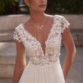 Customized Boho V Neck Wedding Dress Lace Cap Sleeve Bride Dresses Elegant A Line Button Bridal Gown New Vestidos De Novia