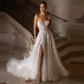 Customized Charming Sexy Slit Wedding Dresses for Women Lace Appliques Sequined Sweetheart A-Line Vestidos De Novia