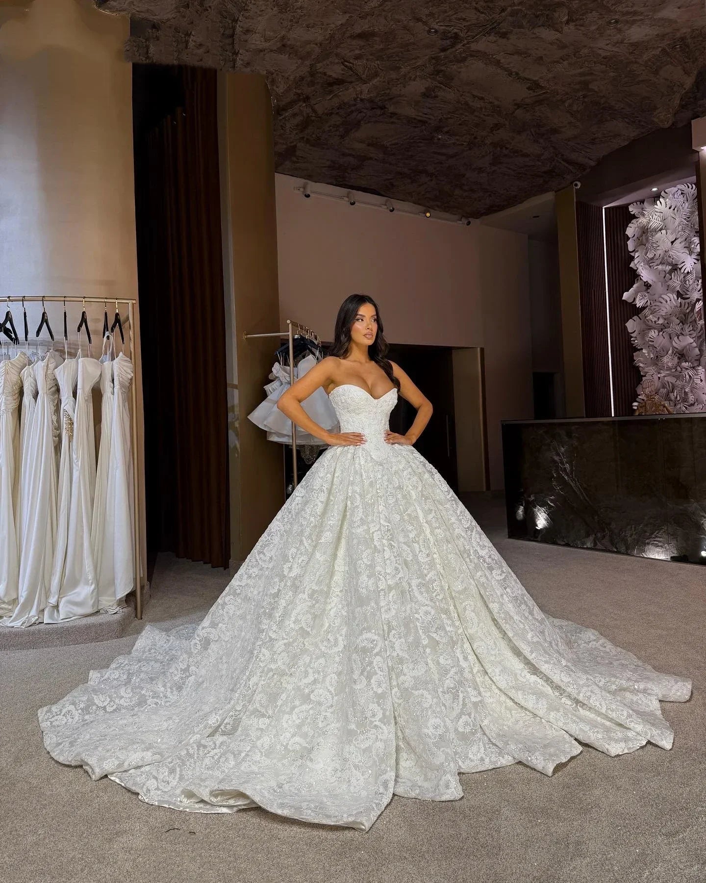 Customized Elegant Floral Lace Wedding Dresses Garden Sleeveless Wedding Gowns With Court Train Bridal Gowns vestido de novia