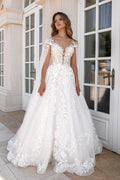 Customized Elegant Lace Tulle Wedding Dresses V Neck Appliques Short Floating Sleeve Bridal Gowns Simple Boho Vestido De Novia