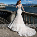 Customized Elegant Mermaid Long Sleeves Wedding Dress For Woman Sexy V-neck Lace Appliques Buttons Bride Gown Vestidos Princess