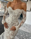 Customized Elegant Mermaid Wedding Dresses Sexy Sweetheart Beads Appliques Lace Bridal Gowns Long sleeve Vestidos De Novia