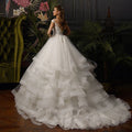 Customized Elegant O-neck Lace Back Beading Pearls Flowers Gorgeous Princess Ball Gown Wedding Dresses Fashion Vestido Novia