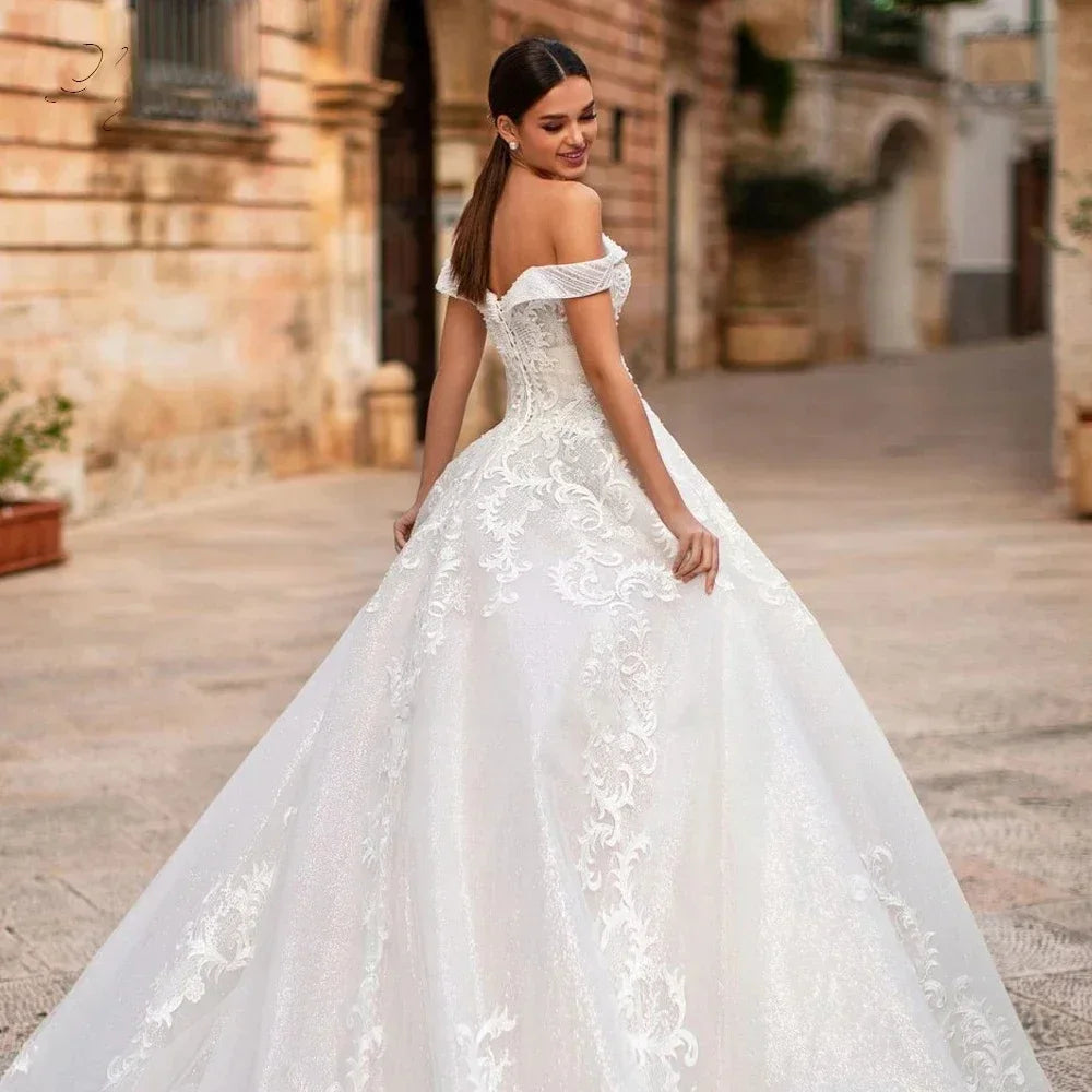 Customized Elegant Off Shoulder Wedding Dress Sexy Sweetheart collar Sleeveless Lace Bridal Dress Floor Length Ball Gowns