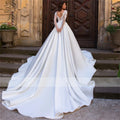 Customized Elegant Satin Ball Gown Wedding Dresses Lace Appliques Long sleeve Bridal Gown Backless Vestido De Novia 2025