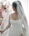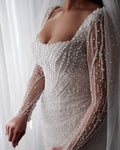 Customized Exquisite Mermaid Wedding Dresses Lace Satin Pearls LONG Sleeveless Bridal Gowns Detachable Train Robe De Mariée