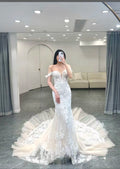 Customized Gorgeous Lace applique Mermaid Wedding Dresses Women Off The Shoulder Bridal Gown Sweep Train Vestidos De Novia