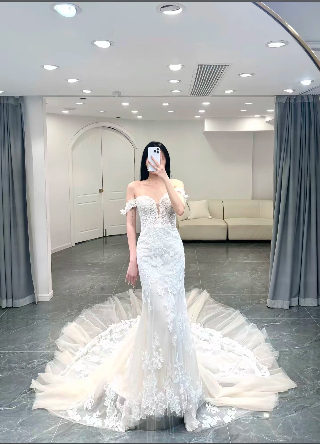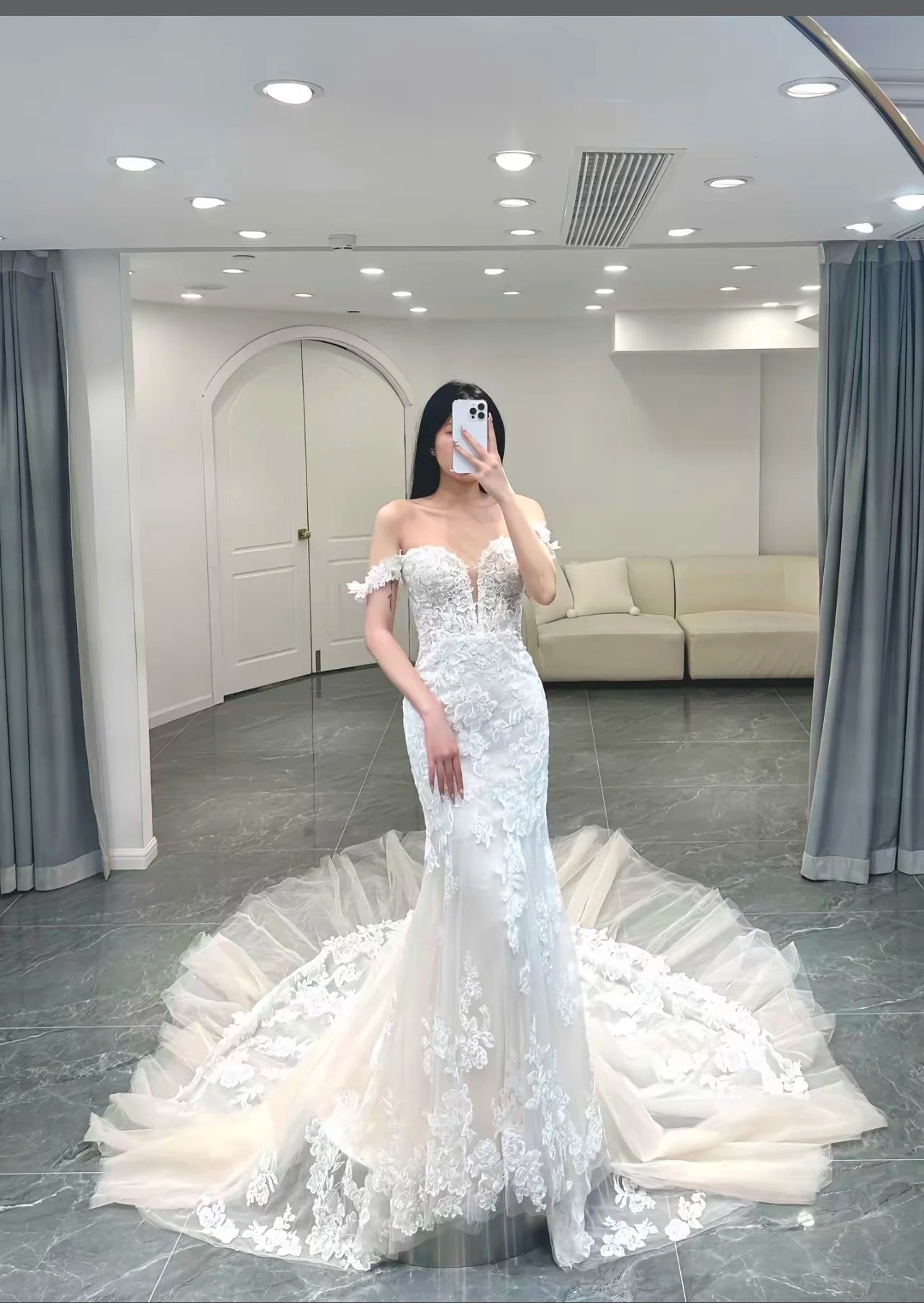 Every gown undergoes a meticulous creation process. Due to variations in lighting, display settings, and photography conditions, slight color differences may occur between product images and the actual dress. For the most accurate color reference, we recommend viewing on Apple devices.