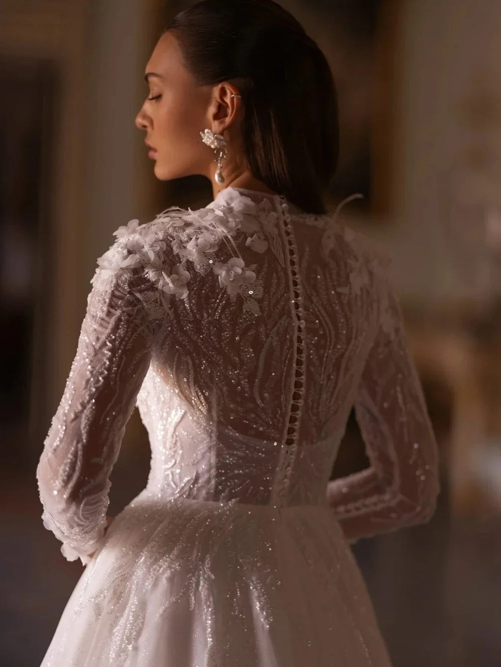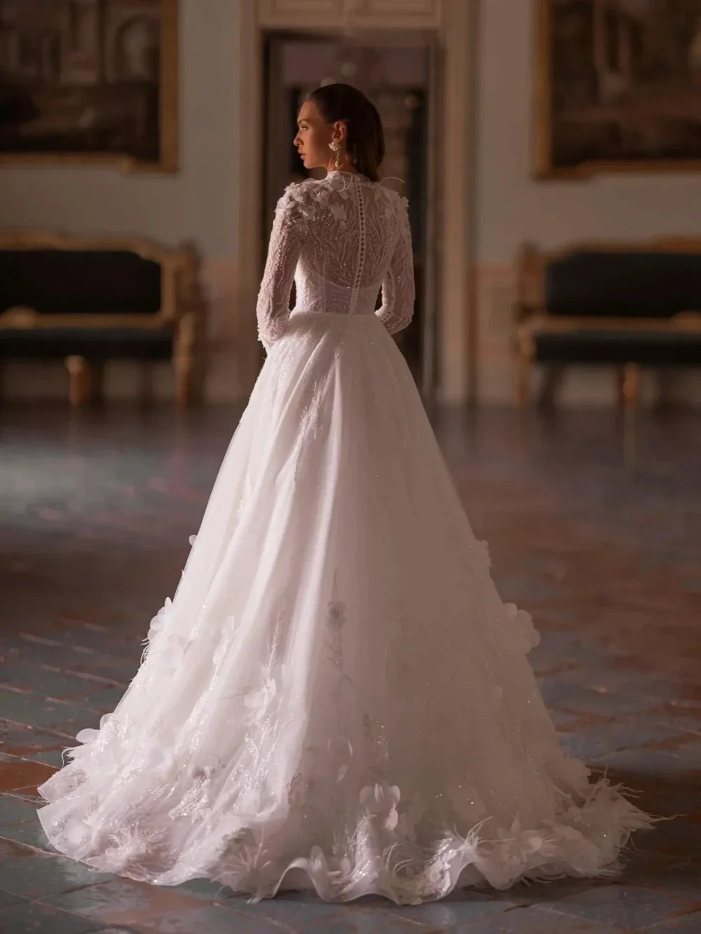 Customized High Collar Wedding Dress Sparkly Beads Bride Elegant Appliques A-line Bridal Gown Robe De Mariee Vestido De Noiva