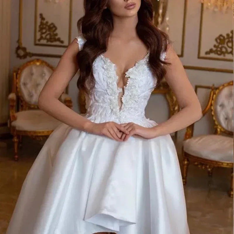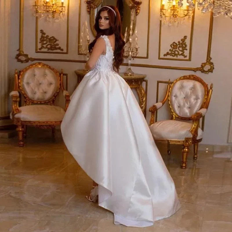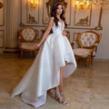 Customized High-Low Princess Wedding Dress V Neck Applique Robe De Mariage Beading Lace Vestidos De Novia