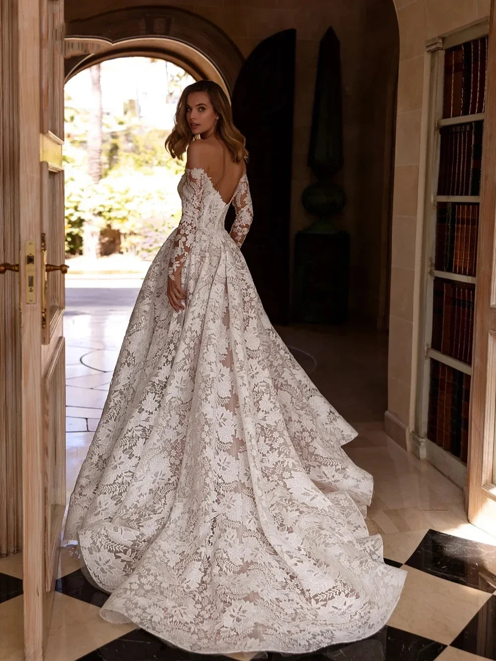 Customized Lace Appliques Sweetheart Wedding Dress Off The Shoulder Long Sleeve Bridal Gown A-line For Bride Vestido De Novia