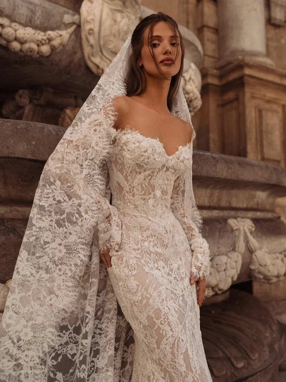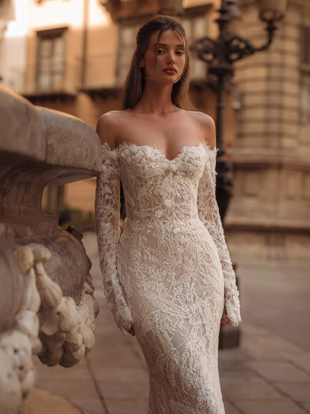 Customized Lace Mermaid Wedding Dress Romantic Sweetheart Neck Bridal Gown Off Shoulder Dresses For Bride Vestido De Noiva