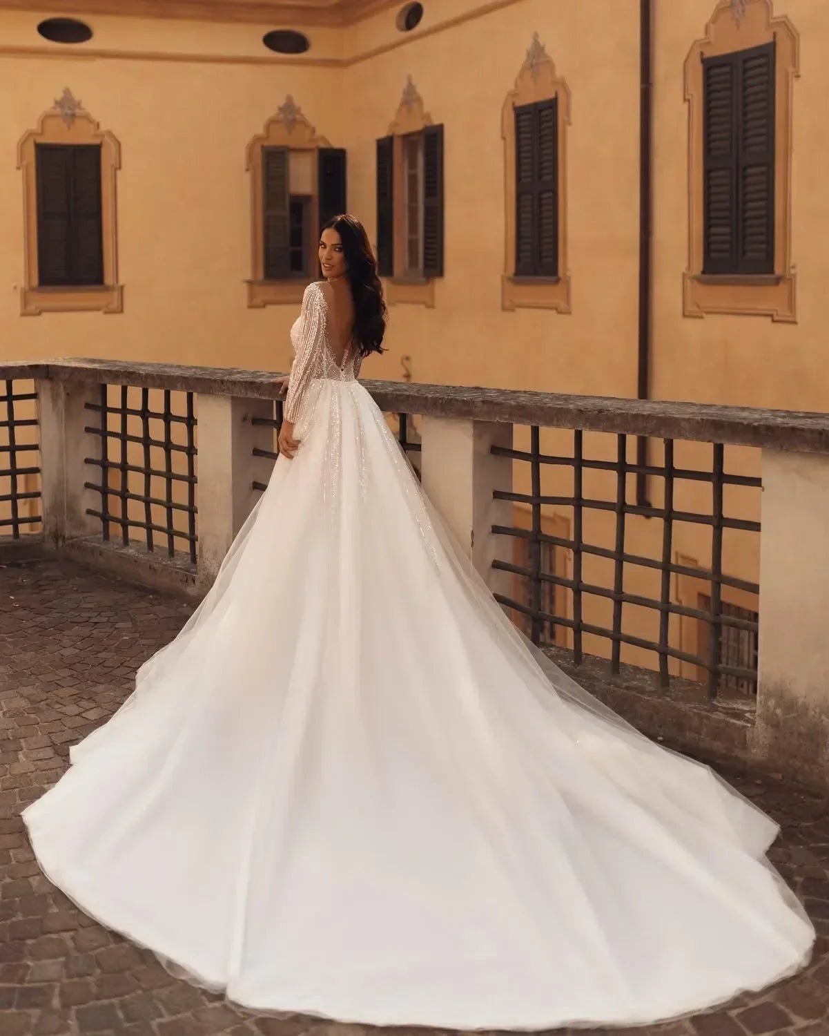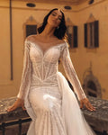 Customized Lace Sequin Tulle Mermaid Wedding Dresses Detachable Tail Bridal Gown Long sleeves Vestido De Novia