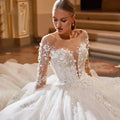 Customized Luxury Ball Gown Bridal Long Sleeve O Neck Wedding Dresses Lace Appliques Robe De Mariee Vestidos de novia