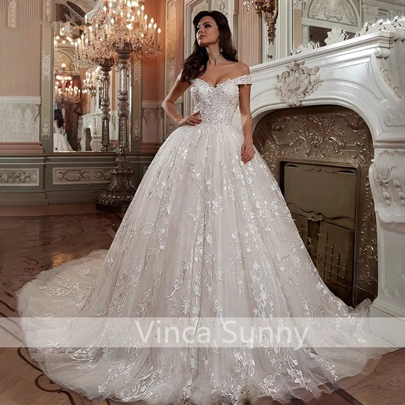 Customized Luxury Ball Gown Wedding Dress Sweetheart Off ShoulderAppliques Lace Up Back Princess Bridal Gown Vestido De Noiva