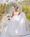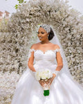 Customized Luxury Floor Length Sleeveless Tulle Puffy Big Ball Gown Off The Shoulder Wedding Dresses With Beaded Straps