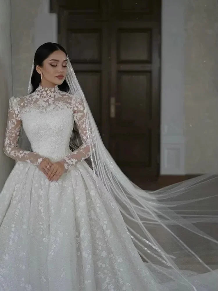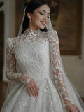 Customized Luxury Long Sleeve Wedding Dresses High Neck Robes Appliques Lace Country Bridal Gowns Vestidos de novia