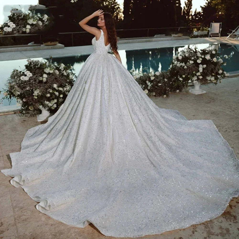 Customized Luxury Sequins Beading Wedding Dress Sweetheart Princess Spaghetti Straps Bridal Gown Bride Dress Vestido De Novia