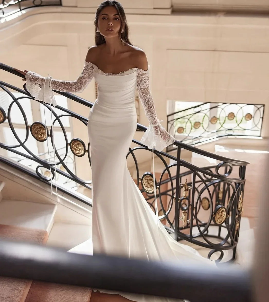 customized Mermaid Wedding Dress Sexy Lace Long Sleeve Robe Off The Shoulder Bridal Dresses Elegant Vestidos De Novia