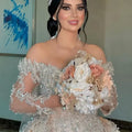 customized Off The Shoulder wedding Dress Pearls Appliques Bridal Dress Detachable Train Illusion Full Sleeves Vestidos De Noiva