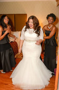 Customized Plus Size Lace Mermaid Wedding Dresses With Sashes Beaded Sheer half sleeve Bridal Gowns Vestido de Noiva 2025