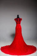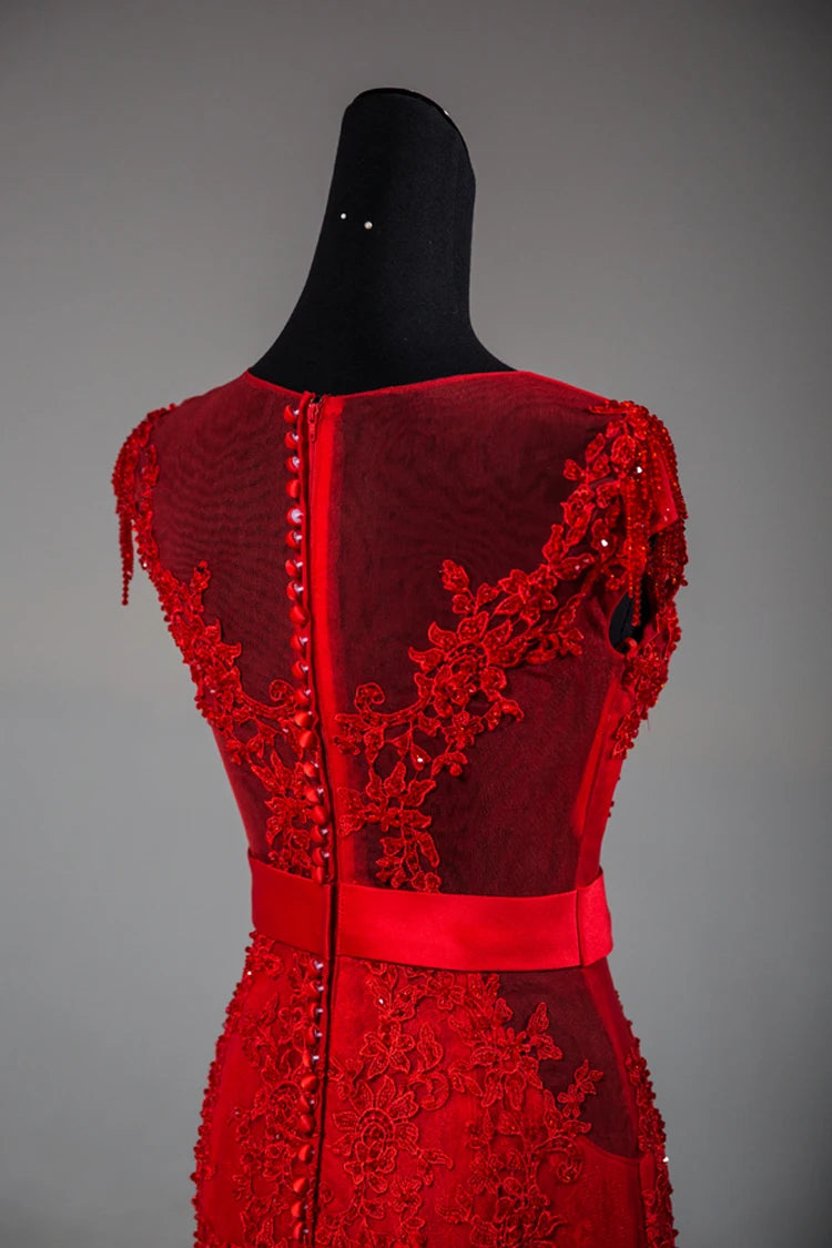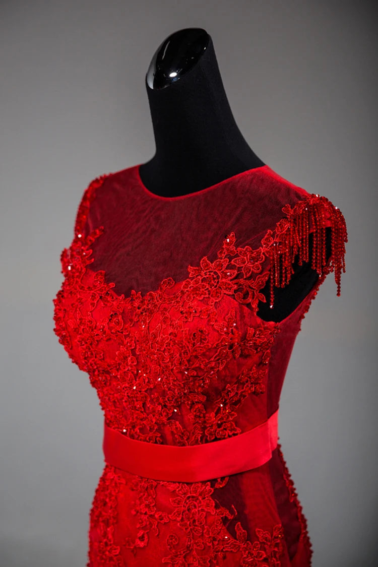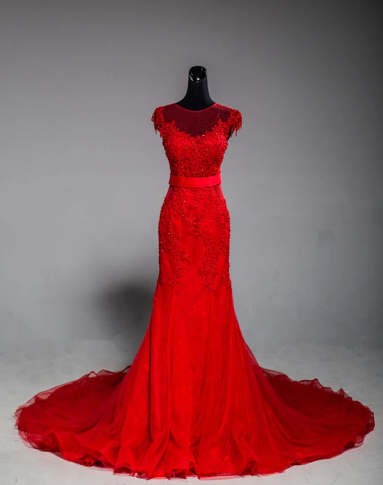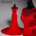 Customized Red mermaid wedding dresses Elegant lace applique Beading Bridal Bress With Belt vestidos de noiva robe de mariage