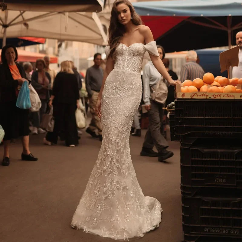 Customized Sexy Graceful Mermaid Sweetheart Tulle Off White Wedding Dress With Detachable Overskirt Bride Gowns