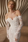 Customized Sexy Lace Mermaid Wedding Dresses Pearls Sweetheart Neck Long Sleeves Bridal Gown vestidos de novia