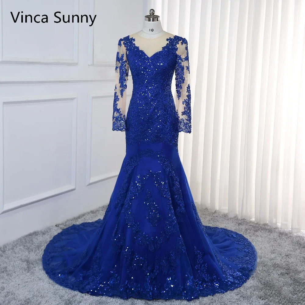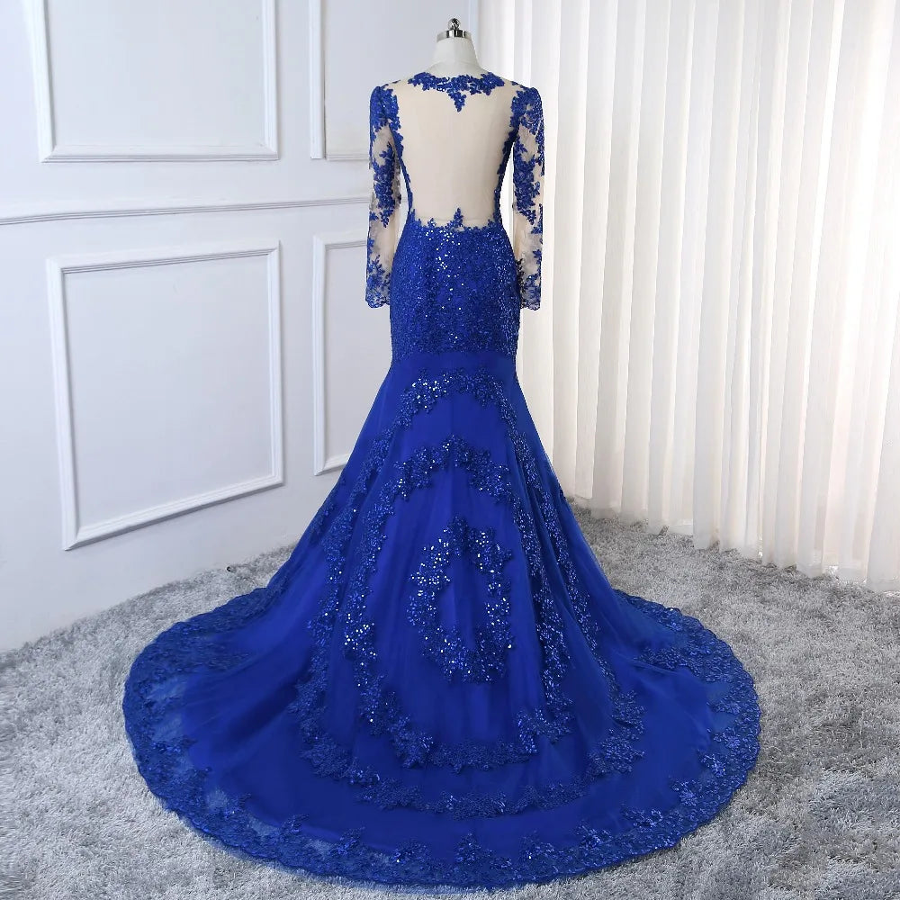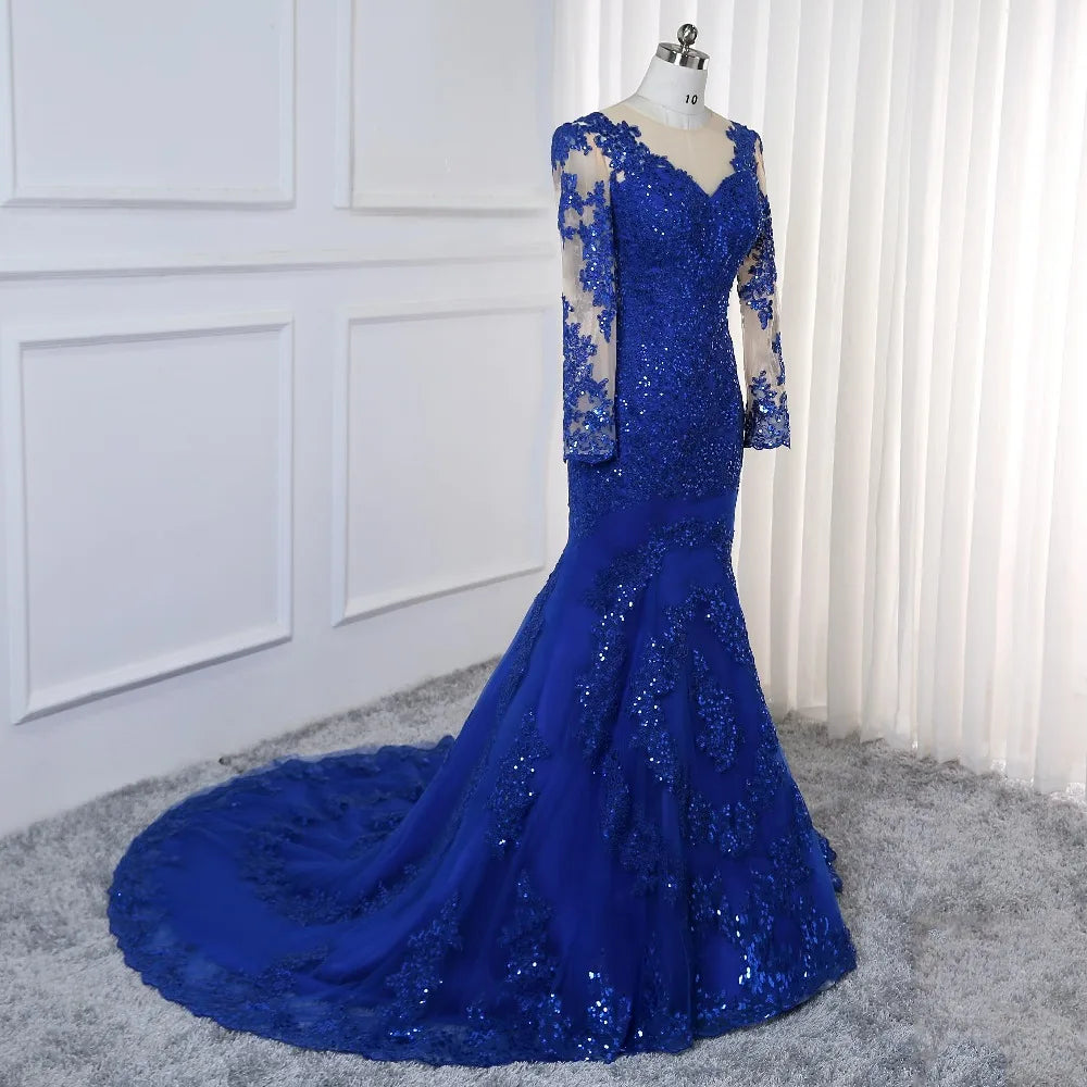 customized Sexy Long Evening Dress 2025 Long sleeve Sequin Mermaid royal blue Prom Gown Formal Robe de Soiree vestido de festa
