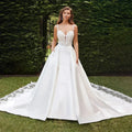 Customized Sexy Sweetheart A-Line Satin Wedding Dress Lace Applique Beaded Spaghetti Strap Bridal Gown Princess Bride Dress
